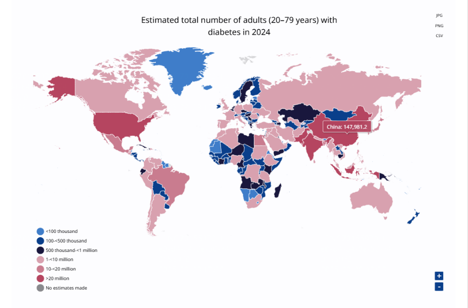1 国际糖尿病联盟(IDF)2024 年最新报告: 全球糖尿病地图( IDF Diabetes Atlas ) (第11版)显示2024年全球20-79岁成人糖尿病患者达5.89亿。数据来源http://www.diabetesatlas.org/