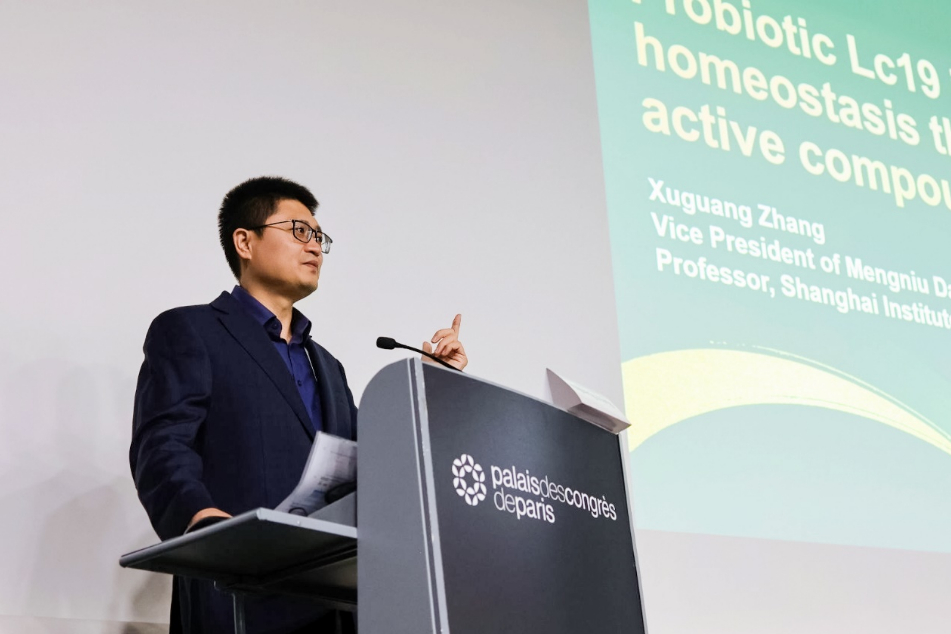 在此次盛会上,蒙牛集团副总裁兼集团营养科学研究院负责人张旭光受邀代表企业发表学术报告,将自主研发的副干酪乳酸杆菌 Lc19及其突破性控糖机制公之于众 —— 这是中国乳业自主研发的突破,在全球顶级营养论坛上定义精准控糖的新路径,更是“中国菌”跻身国际营养科学第一梯队的重要标志。