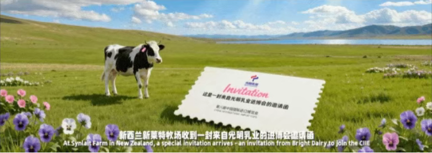 活动现场,光明乳业重磅首发双城鲜踪TVC——《一头奶牛的进博之旅》。这支TVC以AI技术为核心创作力,打破传统叙事边界,通过数字化场景还原,让观众跟随“主角奶牛”的视角从新西兰牧场的青翠草地出发,跨越山海抵达进博现场,直观呈现从奶源培育到产品呈现的全链路。这种趣味化的溯源方式,以一种极具说服力的方式印证了光明乳业对“每一滴奶都可追溯”的品质承诺,也让观众在沉浸式体验中读懂全链品质的核心逻辑。